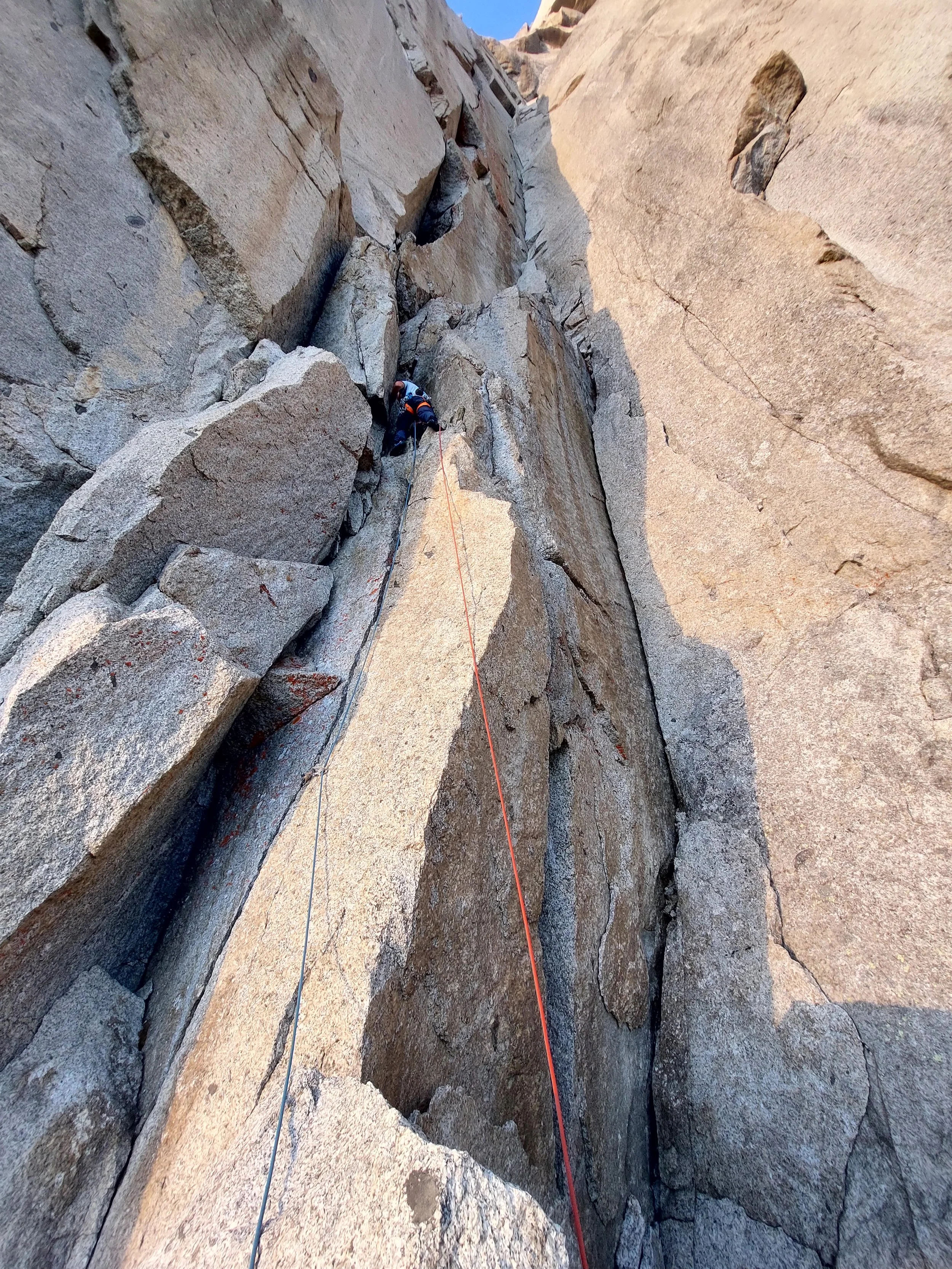 After the corner, we shot up some beautiful cracks and dihedrals to where Monse and I had turned around. Up until this point, we had been cruising. We weren't breaking any speed records but moving well and enjoying the atmosphere.