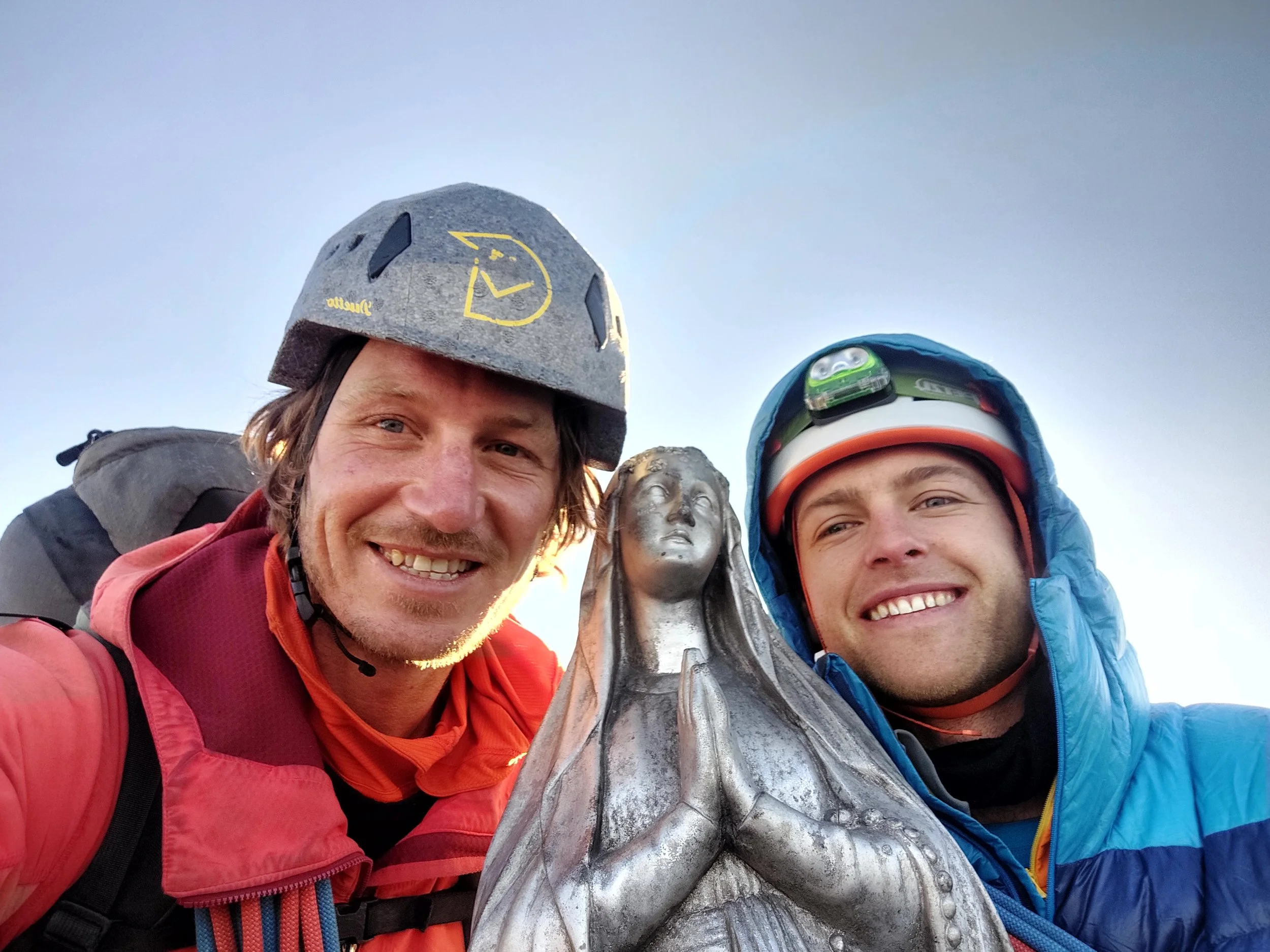 I was determined to reach the summit that night, but after climbing around in the dark, I came across a decent bivvy spot and brought Andrew up. From our ledge, I could see the summit Madona in my headtorch, agonizingly close, but in the cover of darkness, there wasn't an obvious way there. Two more pitches I guessed, but they would have to wait for the morning.